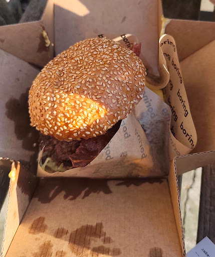 Onto the food though, it was quite good. Went for the Boring Burger, and the cheese and sauce paired very well. The chips were also fantastic, although other reviews have hinted that they get soggy if ordered as takeaway.
