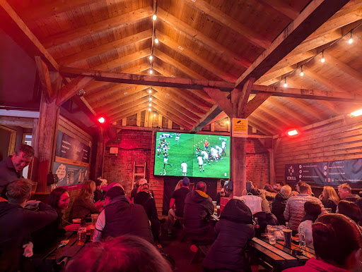 Whitewashed traditional pub with beer garden, for rugby-focused TV sports and live music nights.