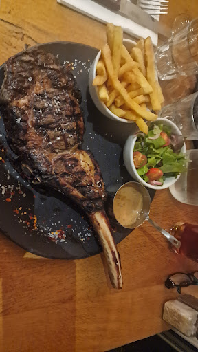 Have eaten here often over the years, but this is the first time I've gone to the meat fridge to select our steaks. Naren, who had welcomed us into the pub, took us to look at the options. He brought out a selection; sirloin, T-bone, porterhouse, each individually packaged and numbered. Then he brought out a tomahawk, which I believe is their premium steak. We looked at each other and both decided that was the one to have. They were massive, maybe we should have gone for one between us, but hell, you only live once. We both like our steaks blue, which is always a risk, but I reckoned they wouldn't have lasted all these years if they didn't know how to cook steak.