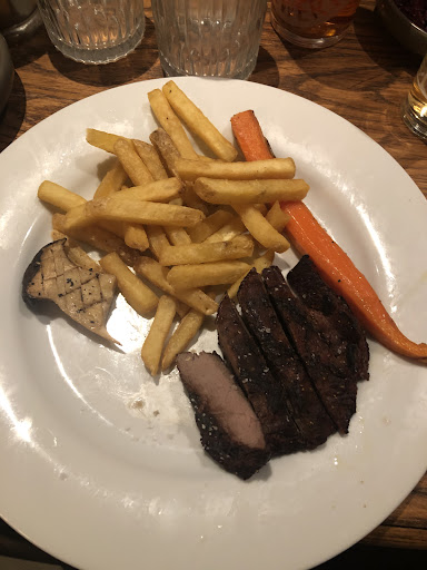 We waited over half an hour for the steaks (the restaurant was by no means busy) and my side order was wrong so they had to go back and get it right. The steaks tasted delicious and were perfectly cooked. My side of a tomato salad (instead of chips) tasted good but I would have expected a slightly better looking salad for the price.