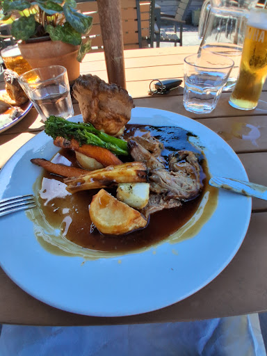 When we came, for Friday lunch, the pub was busy enough to have atmosphere but not so busy that the kitchen was overrun. My wife had the Butternut squash burger, and I had ham, egg, and chips. Both were very tasty and very reasonably priced (especially for the area). Both were washed down with a pint of the Legacy Ale brewed on site, which was fantastic, and one of the lowest carbon footprints of any pint you'll buy. For desert we had the Biscoff cheesecake which was an indulgence :-).