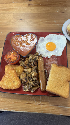I fell across this lovely little cafe whilst waiting for my sons in work. The staff were so friendly. I didn't get there names but the lady made me laugh. Which was very welcome after a 4am start. The food I had was a full English. The portion was exceptional and the quality of the food was really well cooked at a great price of 10.95. I will be back in the area and will definitely visiting again. Thank you once again. Dad_mcdarts . Bullhitters. Mcdarts. Tbd....