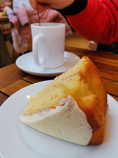 What a warm.and friendly cafe in the centre of Yateley. The staff all very friendly. The food was delicious I had a tuna melt panini. My husband had bacon, brie and cranberry panini. They were presented well with a knife and fork. (Some places dont offer a knife and fork). While we were eating my husband noticed the section of cakes and couldnt choose. One of the team suggested their banana and chocolate chip cake. We weren't disappointed it was really delicious. We later found out it was made by one of the staff. It is obvious that the manager has a very good team as everything flowed perfectly....