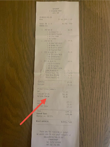 Ā Ā Ā Read moreEdited to add: Thank you Oatsheaf for your response. As you can see from the receipt, service charge was indeed added to the bill.