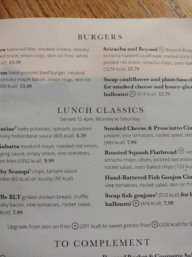 Read moreWe arrived at 12:30, so ahead of the main lunchtime rush. The place itself is nice looking, parking was easy etc. I wanted a light lunch so ordered a Caesar Salad, the young lady came back and said that they didn't have any Caesar sauce, would I still like the salad? No thanks, then it wouldn't be a Caesar salad would it! In the end I ordered a burger and chips, just to have something. The burger was OK but the chips were overcooked, the whole setup seems disorganised on the day I visited. I was primarily there to meet an old friend, so thankfully the meal was secondary. If I wasn't there with my friend frankly I would have left after the "Caesar Sauce" fiasco. To a degree I can understand running out of something fresh like lobster, but not having a common sauce is just silly and poor customer service. ........... Update: Firstly The manager Morgan contacted me right away, as you can see below, I called her back, she apologised and explained what had happened. She invited us back for a second visit. We called by again on Thursday the 24th September and were met by Lindsay who made us very welcome and knew our circumstances. This time we were delighted with the beautifully cooked and presented Fish n Chips x2, washed down with iced water and a lovely pint of beer each. Morgan, you and your staff are a credit to the group, very well done! There was also an incident in the Car Park where an elderly driver in an automatic had chosen the wrong gear and crashed into another car. The staff were all very supportive with everyone concerned. It is lovely to see caring people, very well done Morgan and all of your colleagues! As you can see, I've changed my 2 stars to 5! To paraphrase Arnie "We'll...