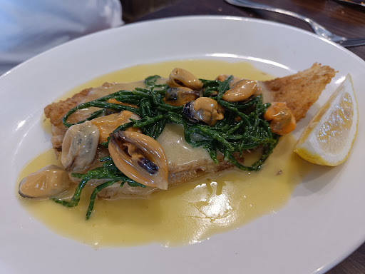Let's be honest. 5 stars are for perfect service and faultless food, elegant tables and excellent ambience This little place is a bit echoey (no soft furnishings hanging about), so a little loud, plain tables and simple chalkboard list of starters and mains, next to a concise wine list. With 26 covers, it is not large. Despite being alone, the waiter coped admirably as he dashed about. He even bandied some banter about whilst bustling his way here and there. We decided late on on our journey home we fancied some fish so decided on Hastings, never having been there before. This restaurant is a little treasure in an unprepossessing street. Food good, Chef good, choice good, service good. A very lucky find for us strangers. Already...