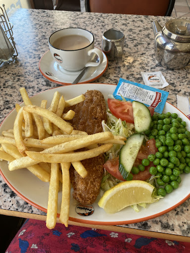 Read moreI went here today for lunch. Walking in I was greeted by smartly dressed waiters who were attentive. I ordered a cup of tea and cod and chips and the food arrived quickly. It was tasty and hot and very enjoyable. The salad was lovely and fresh. I would definitely like to come back here and have perhaps an omelette and salad. The menus are extensive with photos of the dishes. Thank you an...
