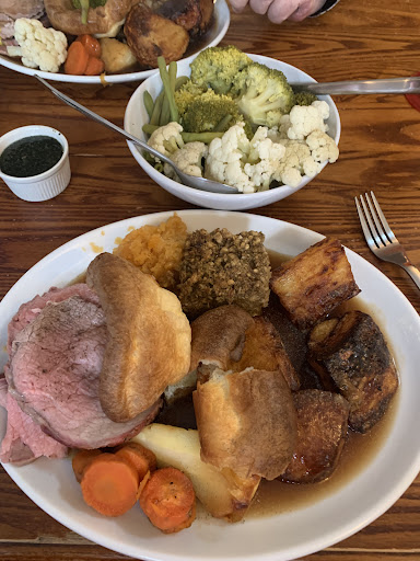 I'm not a big drinker and don't go to a pub very often,so before today I'd never been in The Lord Raglan in Emsworth before. My daughter and s-I-l booked it for my Mother's Day lunch and we duly turned up. We liked the lively atmosphere when we walked in, and we had our name on a chalkboard on the table. Warm greetings from the staff then drinks came fast after ordering. Dinner was simply a choice of 3 roasts and a vegetarian option, complete with steamed vegetables and loads of trimmings included. I was staggered to be told I could have the beef 3 ways - rare medium or well done. Chicken would be boneless breast meat, and the gammon would be thick sliced and succulent. Between the five of us we had all of them. For those who can't make their minds up, there is even a choice of all three on the one plate! Our meals came quickly, plates laden with lots of well cooked roast potatoes and parsnip, a huge chunk of stuffing, an enormous Yorkshire, carrots, and a swede mash. As if that wasn't enough, 2 large side dishes of broccoli, cauliflower and French beans between 5 of us were brought out as well! We had ordered a portion of extra roast potatoes, not knowing how large the portions would be, which we struggled gallantly with but it beat us. The staff checked on us for drinks a couple of times and were bright and chatty. I can honestly say I was more than pleasantly surprised and very impressed with the food and service. Hand on heart we...