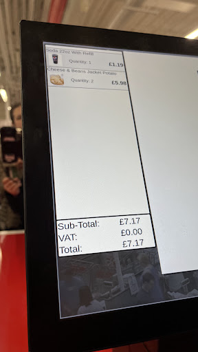 Read moreService in unbelievable slow. Price is good but would actually rather pay a bit more then wait 15+ minutes for a jacket potato! No communication to customers that it was refurbishing the food court so went there and had a menu so limited it really wasn’t worth them bothering. Very...