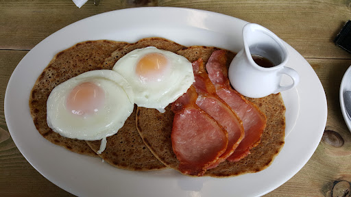 Just had a top quality breakfast at this wonderful eatery whilst out biking in the area. Worth the trip from Sheffield and will definately revisit. Look how the bacon has been grilled to make the small amount of fat crispy. Look how the eggs are very fresh and perfectly fried with no runny fat. All served with a jug of maple syrup. To dye for! My mate had full English which he said was excellent. Breakfasts are rarely as good as this from elsewhere. The owner invited us to park right outside. Cafe owners should take lessons here. This is how it...