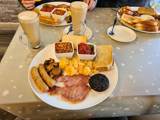 The breakfast have shockingly bad “pork” sausages (2% at best) are probably the worst in Glossop for a cafe. I think Greggs offer better quality sausages tbf.