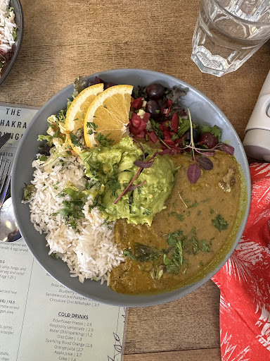 Read moreWas looking for somewhere a bit different to have lunch on a short visit to Buxton, and this café caught my eye! I was greeted by a friendly and smiley young waitress who made me feel really welcome. The café was very busy, almost full, but she found me a table close to the entrance. I loved the cosy but vibrant atmosphere, and the colourful Indian decor with its intricate artwork and abundant floral decoration. Family friendly and dog friendly. The toilets are up a flight of stairs, but they were clean and well kept. There was lots of choice on the menu, from street food to imaginative main courses, and breakfasts with an Indian twist. I ordered the Desi English Breakfast, which combined the familiar British bacon, sausage, fried egg and mushrooms with potatoes flavoured with cumin and a bowl of masala spiced beans. Well cooked, with just the right level of spiciness, and ample portions. There was a wide choice of unusual and creative hot and cold drinks, but I opted for the straight latte, and it was very good. Pity I was so full, because there was a tempting selection of cakes and pastries to try. Service was both quick and attentive, and the prices were very reasonable. I was so glad I found this place! Would...