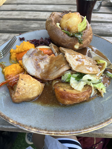 We came with my 90 year old Aunt (in a wheelchair), my parents (76) teen (16) myself and husband. 3 course Christmas Dinner booked for the Saturday before Christmas Eve at 3 o'clock Car park has good disabled bays , road down from the car good, entrance with ramp. Door a little narrow , but accessible with wheelchair. Table ready for the 6 of us, nicely done and Christmas crackers. 4 of us had gone for the 3 course set menu, 90 year old and 16 year old went off menuo , but they were happy to sort, nothing was to much trouble, staff would give 110%!! Took orders, food arrived, starters fabulous. The soup and bread was very tasty and bread warmed.Prawn cocktail was delicious and the spicy balls (can't remember name 🤣) the teen & hubby loved. Then 5 of us had the Christmas lunch .... all I can say is wow. Vegetables cooked to perfection, everything hot, mash so smooth and tasty, turkey was plenty, roasts amazing and for the pigs in blankets beautiful. Asked for an extra gravy boat ( as parents said there is never enough) but really didn't need. My parents had been to a posh hotel in Congleton with my sister and said this meal was so much better than that!! That coming from my mum is high praise indeed!! Staff great, kept asking if all OK, do we need more drinks .... honestly well impressed with the service. Left us some time before desserts came, good job as omg , were truly fabulous, sticky toffee pudding with toffee sauce, Christmas pudding, then Apple & cinnamon crumble with icecream. Wow .... hot & we all said how delicious they were. We've not been to this lovely pub for many years. It was cosy with the log fire, inviting, nice Christmas decorations, excellent food and staff. Would HIGHLY recommend, we can't wait to return.And what they have done outside looks fantastic for families, young & old. Hope to return for a Sunday Lunch very soon... Thank you all at The...