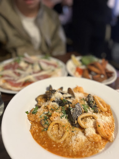 My partner had the Gamberoni Piccanti and I had the Fungghi Gorgonzola as starters, my starter was very nice however my partners was not as he had a maximum of 4-5 Prawns which to be honest was not worth £9.95 at all! For mains my partner had a gluten free vegan pizza with roasted vegetables and I had the Linguini Marinara and we were not happy at all! The pizza was burnt on one side and very pasty to the taste on the other edge, with minimal pizza sauce, a small handful of vegan cheese, 1 tiny bit of pepper, 2 slices of masserated aubergine and 2 small slices of half grilled courgette! My linguini was a pale of what I had previously when I ordered this dish! I had several empty mussel shells, 2 pieces of Squid and Prawns, and about 3 clams, but when I had this dish before it had almost double the amount of everything and tasted fresh instead of a sauce that tasted premade and a "brought in" product with a handful of herbs chucked in. I don't know if the chef has changed or if they have had to drastically cut costs or what I have no idea however I would not recommend this place to anyone where before I would go away ranting and raving about this restaurant! We also did not recieve a checkback once while we were there! Nobody came to ask about our food or if everything was okay, this to me is a bad sign in a restaurant seeing as I work in the industry myself and know how food service in restaurants works. When we spoke to one of the servers about the meal she said she would speak to her manager and she didn't come back with a resolution to the problem she just gave us the bill with the pizza removed which I requested. I would not recommend this place to anyone as it is currently stands because it has certainly fallen from grace and I do not believe me and my partner will...