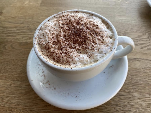 What a lovely little gem of a place in the right place and time. Superb friendly service and wonderful homemade coffees, cakes and lunch items. Today I had some crumble cake and an amazing flat white. I’ve been touring the country and comparing flat whites and this place is in the top five, maybe the top spot. Wonderful atmosphere of locals very happily returning. After a minor op at the surgery I was really needing somewhere homey and friendly and this is the place. Maybe the only place. Thank you. Decent prices and ample size!...