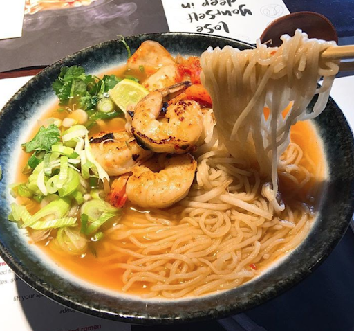 We receieved our prawn crackers, my partner had finished her Katsu curry, before my Rahmen arrived (this is expected here). Only after finishing both mains, did our hot honey chicken starter arrive. Our Gyozas never arrived! This was taken off our bill, but before we had a chance to make a complaint, we saw our waitress out the window walking down the high street home, leaving us with nobody serving!