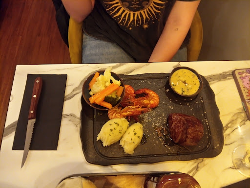 Read moreWow wow wow book table amazing . Ok the low down after 6pm free parking in St Neots easy access pre book table soon as this new establishment gets out it be well booed up .grab first drink in weeping Ash cheaper on the pockets . Booked table daughter and I birthday gift , Welcome warm atmosphere don't sit door connected to toilet doors kitchen cold breeze staff welcoming , starters daughter had octopus tentacle slightly overcooked but not to degree too chewy I had scallops wow tender delicious melted in mouth gutted wasn't more or side dish for tenner, then ribeye steak arrived and vegetables mash on side omg steak seasoned so well cooked to my perfection red no blood fats melted into the meat the mash a simple mash no no no hint of lemon and seasoning truly amazing veggies and cracked salt on plate superbly done to tantalise the taste buds top notch . Daughter had surf and turf fillet steak king prawns Diane sauce immaculate you can't go wrong I do hope they keep these standards going as they progres, a bottle of wine around £20 quid no point just getting a glass as expensive . Only downfall after exceptional starters and main was bonifee pie doughy base and lacking Taste and texture but thank heaven for first two dishes amazing I would go again and again sampling new dishes a refreshing new place in St Neots hopefully get in again when the word is out as will get overbooked .. congrats on management and cook thank you waitress ;+) I am happy customer Update Breakfast prices are standard to other establishments I had the brunch breakfast and a coffee, breakfast was well portioned not greasy or fatty great individual taste to each item once again happy...