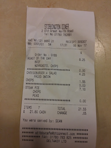There is no fuel nor a shop, so you would need to stop at the full services around a mile away from Stibbington Diner, if you require fuel etc. However, if you are driving past (or even if you are just near the area and fancy some homely food) you should certainly swing in.