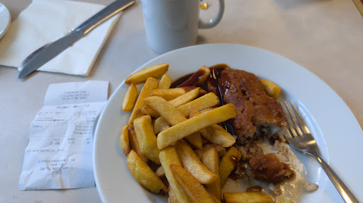 It's been more than 15 years since I've been here & I think it would be never again. Was really looking forward in having a good meal. It seems tidying in side the young lad who served us was ok. We ordered our meals, I ordered Steak pie chips , peas but no gravy, My wife ordered Cheese Burger with Chips and our son ordered Roast of the day which was Roast Beef, veg with Chips. We waited about 10 to 15 mins before our order was called out. But while we waited I was watching the young lass who was doing the cooking or should I say Microwaving. She would get a white plate then open the large stand up fridge and grab a hand full of veg, meat or what ever then put that into the microwave then put the chips into the frier then start and ping the mix. When the young lass was taking food out of the fridge she never wore food gloves at all, food was contaminated which is not good. When I got my meal it was covered in gravy which I did not ask for. She took it back and said to me I'll have to do it again then and I said yes please. My wife's cheese burger was very greasy and the bun was not toasted, she didn't really enjoy it. My son's meal was ok. 5 minutes later I got my meal the chips were ok the steak pie was dry, salty & the pastery was tough and the peas were like bullets, it was just microwaved to death. I would not recommend...