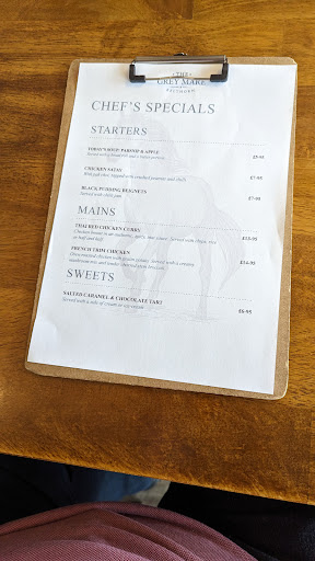 Read moreA Truly average meal with with very average service and a £17 a head price. It was on a busy Sunday and service may well have been stretched .We opted for the roast dinners - what we got was pretty well what I would expect from a cheap carvery - in as much as everything was from frozen - rather bland - and rather tasteless and how hard is it to make fresh Yorkshire Puds? You cannot lift yourself on to a pedestal like this pub has and not expect criticism. These are not nit picky things its about quality, standards and value for money and I saw very little of any. We were left waiting 40 minutes between starter and main when my wife's main came it had foil and lamb in her turkey - so obviously they carve all meats with one knife....when she asked for cranberry or redcurrant sauce the reply was we don't have any.....My sons fish and chips looked iffy and consisted of a frozen pre-battered fillet and frozen chips I asked how it was and he said disappointing really....no better than Morrisons Cafe......says it all really! Having said that it is a nice well decorated pub and I do think the couple running it are trying but there are two dozen other pubs i would eat in before I went to The Grey Mare.....How this beat the Plough at Eaves or many other Thwaites pub's makes a total mockery of their award because this pub is not even good let alone excellent or...