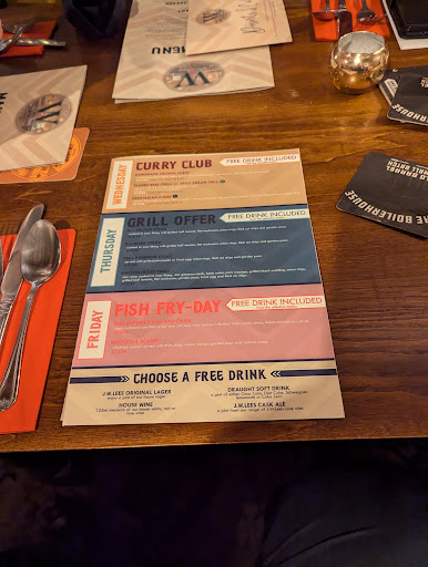 I liked the venue. Really well decorated inside for Christmas and lovely and warm. No skimping on heating here. We were sat near a radiator for our meal and this was on throughout. We moved down into the bar area and they have a real fire going throwing out some much welcomed heat. The quiz was well run and we would probably go to that again. However, I definitely would not order the...