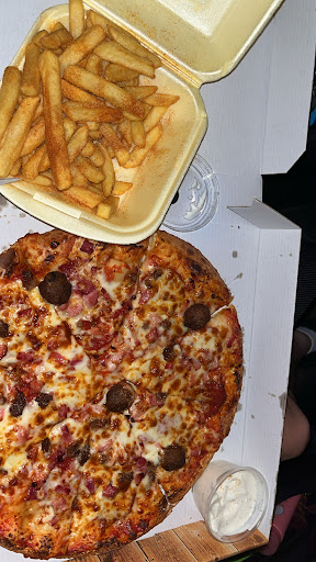 When I got there and picked up he was so lovely and the takeaway looked very clean that I gave him a £5 tip and he was so appreciative and gave me a free drink! I then got to my car and OMG it was the best pizza I have ever had had. I got a meat feast, chips (with chip spice) and garlic cause and it was just chefs kiss.