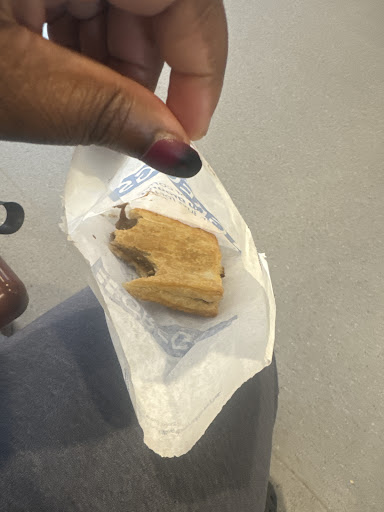 I queued up but she was in so much of a rush that she was constantly rolling her eyes and tutting at everybody she was serving, then when it was my turn I asked for a sausage roll and a cappuccino but she had me scan my app constantly, and when I told her that I wanted to pay via the app she rolled her eyes at me, snatched my phone and continuously scanned it, I couldn't wait to get out of there.