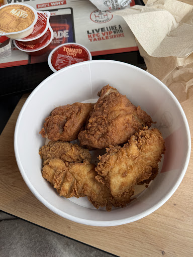 Read moreIf there's is one thing that this store is, it's consistent. Consistently terrible. I honestly struggle to give any positive comments. Let's start with the premises, outside is relatively clean apart from the occasional bit of rubbish from crappy customers. Inside however it's a constant mess, even when it's dead, the floors are dirty and sticky, the bins are almost always full, the tables are never fully clean, dirty trays everywhere. Covering them up with promotional pieces of paper does not make them clean again. The area where you get utensils from is either minging or empty, apart from straws, there's always straws everywhere. Let's get to the service; the queues are ridiculously long, even with 10 people waiting there's only one poor sod on the till, but the manager's office always seems ever so full of people avoiding eye contact. Most of the staff look like they don't want to be there, who can blame them. The food is ok, it's KFC, at least when their not out of chicken, and they always seem to be out of chicken even when all the other nearby stores do just fine. But the final straw that broke the camels back was when I decided to come there on my lunch break. After waiting 10 minutes to get served, I order my food to take away and proceed to pay, but there's is an issue with one of card machine, it won't take Android or Apple Pay." No problem, this happened yesterday with this machine" I said, she stood there with a blank look on her face, "the guy just jumped on the other terminal to process my order yesterday, can't you just do that?" I suggested. "Sorry I am the only one serving" she mumbled. "So?" I asked, " sorry I can..." Before she finished giving me her pathetic excuse, after wasting my time and the time of other customers I turned around and swore the holy oath that I shan't ever step foot in any other KFC. The Kernel is turning in his grave. There is plenty of other gross misscoduct that occurs behind the scenes I am sure but quite honestly if you want chicken, go to MacDonalds...
