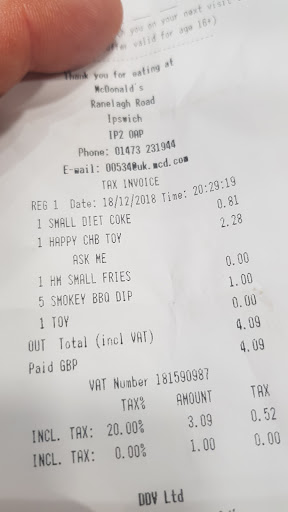 Read moreThis is the second time I've visited your MC Donald's on London road Ipswich. The last time I came here I went through the drive through I asked for my family's meals and mine I'm a vegetarian and I do not eat meat at all. Due to medical reasons. I took my order from the window and went home. When I arrived home I checked my breakfast wrap no meat extra egg!! and it had bacon in. I called the restaurant and they made me return and collect another they were very apologetic. Today I've come to have a sit down breakfast with my family and I went to the counter and I ordered the same item a breakfast wrap no meat extra egg. I heard one of the servers ask the management for what was that order 53 the manageress Zoe said no meat extra egg. Once again I took a bite and it's got bacon in. I took this back asked for the management Zoe said sorry loads of times and brought me another wrap. I'm severely angry about your this and I'll take this further unless something is done about it. The members of staff while I was waiting were all stood together laughing & joking!
