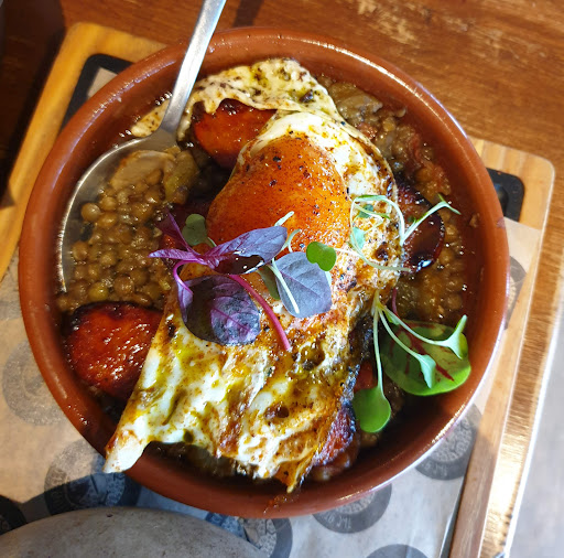 The chicken dish was succulent pieces of chicken that fell of the bone with crispy chicken skin delicately flavoured with chilli. Like a pimped up roast chicken.Ā The chorizo cooked in cider came with lentils and a soft fried egg on top again plenty more bread to mop up all the lovely sauces. The timing of each dish was perfect clearly these guys know what they're doing. Empty plates taken away promptly. Attentive and really personable service. The wine was good and beers served in chilled glasses from the freezer to keep it super cold. We took a pause as wanted to order more.. but were beaten..well we made room to share a pastel de nata and chocolate caramel cake with a perfect black coffee. An excellent evening. I can't wait to go back and try some of the other dishes we didn't have room for. We couldn't leave a tip as didn't have cash only card and enjoyed it so much I visited the next day just to drop off the missing tip. I would've had another coffee and cake but they weren't any free tables. Another day for sure. What a gem of a...