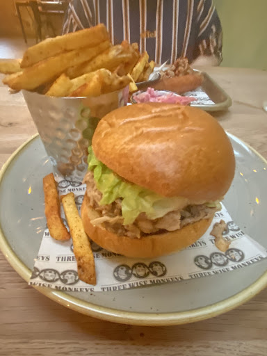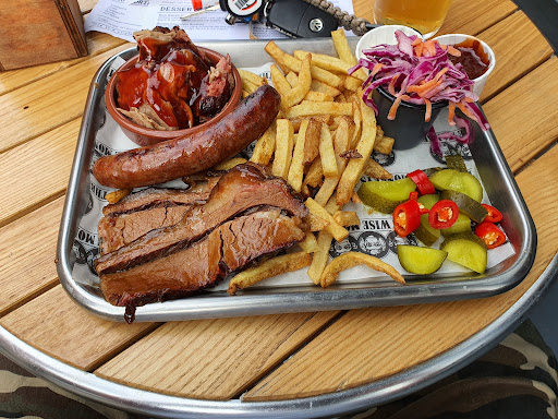 Food came out pretty quickly & was very tasty. I had the pulled pork BBQ burger and was very nice. My partner had the combo meat feast where you can pick either 2,3 or 4 mains and X amount of sides for each. He chose the pulled pork & Chorizo sausage. Decent price as well and big portion. Our meal came to £37 for two mains & 2 soft drinks.