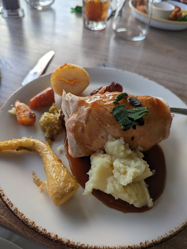Read moreA quality restaurant nestled in the picturesque Galgorm Castle grounds, an enjoyable experience but not without its flaws. The menu has some real highlights, a selection of starters that caters to most tastes and an excellent array of mains that certainly tantalise the taste buds, the grill section being a particular point of intrigue. The dessert menu on the other hand was distinctly uninspired so I didn't even bother - a real shame as I am most certainly a dessert lover. The main course, I went with the sirloin cooked medium rare - something that so many restaurants are incapable of of achieving - was cooked to absolute perfection. Exactly how it was ordered and also seasoned properly with some tasty grill lines - whoever cooked that meat knew what they were doing! The only downside is the boring forced fried mushroom and tomato. That is phoning in the garnish - you are located on the edge of the countryside, it would be easy to offer beautiful seasonal veg which would be so much better. Truffle parmesan fries were rather good as a side dish and the pepper sauce was bang on though! I had a Guinness to drink and the pour was perfect - if you know Guinness then you will know what I mean! One downside was a less than perfectly clean glass, otherwise it was flawless! So overall very good food and drink in a modern and enjoyable atmosphere. Only let down by some curious menu design flaws and it isn't cheap - fix the flaws and I would be happy to pay for...