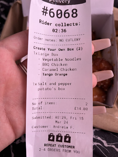 Ā Ā Ā Read moreStay away. I have never before had to bin a meal. The food looked so nice. We came in as soon as it opened and everything looked hot and fresh. After taking a couple of bites we had to pretend to take our food away so that we could throw it in the bin, it tasted that disgusting. I have never tasted anything like this before. We aren't picky eaters and were looking forward to some greasy low quality food, but this was another level. I never really leave a bad review but feel like I must, to protect someone else from this place. Will update this review later if I come down with food poisoning. Avoid...