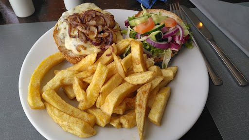 Décor/cleanliness +lovely seaside view -unhygienic. The tables were very sticky, definitely haven’t been cleaned in a long while. The radiator had stains and fluff, hasn’t been cleaned for years. Chairs were dusty. -Menu’s were badly presented, bent and dirty Waiting times: -the restaurant was empty, after placing our order for food we had to wait nearly half an hour Food: -Limited selection -Overpriced for the quality and waiting time -Like chewing on a flipflop. We ordered the ‘homemade 8oz beef burger’ which came with chips. The chips were the worst we had ever tasted. Just from looking at them you can tell they were not fresh. They looked and tasted like they had nipped next door to the chip shop, took their leftover chips and reheated them the next day. The burger was extremely dry and rubbery, the bun was also extremely dry. Couldn’t eat more than half the burger even though I was hungry because it took so much effort to chew it. The only thing I think was fresh was the salad. You could get more and better quality for your money (£8.25) from McDonalds -75p for a topper, so £1.50 extra if you want cheese and onions in your burger. Service: +waitress was friendly -unprofessional staff. When I went up to pay, two young boys were leaning on the counter chatting to friends that were sitting near the till. The waitress had to tell them to get out of the way so she could serve me.