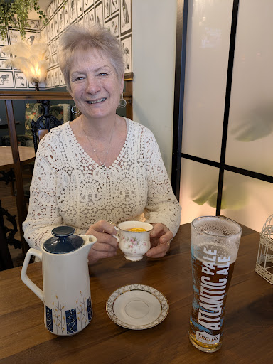 Read moreThe Tipsy Teapot is a great and unique experience that really brings a bit of fun to a date night, family event or just casual drinks. We decided to visit randomly during the 31 degree heatwave, hoping they'd have a table as they're ALWAYS busy (a good sign!) and luckily we managed to get the last table inside. The barman/ waiter (Dom?) was really welcoming, sat us down and let us know someone would come over to take an order shortly. 5 minutes later one of his colleagues came over and we were able to order. I made an off-hand comment about how we'd have liked to be outside and Dom - despite being rushed off his feet - took the time to let me know a table had become free outside if we wanted it. We opted against it in the end because of how hot it was outside (inside is ACed) but I really appreciated that attention to detail. I had a great experience with their Teapot Cocktails - I really recommend the Blush Crush. It was very, very good and served in a fancy teapot and teacup (I love teapots and saucers which is what drew me in in the first place, I'm lame whatever lol). For lunch I had a Brie, Bacon and Cranberry Jelly burger with fries. It was really beautifully served, very delicious and a great portion for good value. My only comment is that we were in for about an hour before we got our food however I am 100% confident this is because of how busy they were; the staff were doing a great job keeping up, and it was well-worth the wait. My partner had a diet Pepsi and a chicken Goujon sandwich with fries. All together our bill was something like £45 - really reasonable considering the portions and quality. We'd recommend this to anyone, and in fact were recommended this place by someone who had visited from London and said how great an experience it was. 10/10, 5*. Thanks...