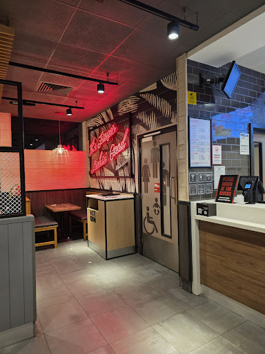 Read moreThe speaker box was out of order, so we had to drive around to the first window to order. It took about 20 minutes from arriving in the drive-thru to get to the first window, which was bad enough. However, the 'man' at the till was absolutely useless. He asked us what sides we wanted, and we said beans and gravy - he then told us they were out of beans and 'oh we're also out of gravy'. So we asked what else was available and he said he didn't know - in fact he started 'ummm...'ing about it, before saying 'we have rice?'. I then asked me partner if we should just call it quits and go somewhere else but after almost half an hour we didn't really want to wait in the busier McDonalds queue across the road. However the guy at the till then provided a helpful suggestion: "How about I just give you 2 sides of rice, and when you get to the second window you can ask them what they have in stock because it keeps coming in and going out of stock and so I don't know what they have or not." ... we were absolutely stunned, isn't this exactly his job? But after such a long wait and even worse service we just said yes, hoping we'd get someone else at the second window who might actually be helpful. Queue another 5 minutes to get to the second window; we then waited another 10 minutes before someone even came to the window - after such a long wait, we were then amazed that we hadn't even been acknowledged. No apology, no reason, nothing. But then who should come to the SECOND window but the guy at the first window who - because we hadn't moved, was unable to be so helpful to people at window 1 and apparently decided that he should see if he could help. Do you believe me when I say he didn't help? He came to the second window, didn't recognise us - even though we were the only other car he'd seen besides the one person behind us - and gave us our food without even an apology. He then gave us a bag with FOUR portions of rice in it, not apparently remembering his incredible advice not 10 minutes ago, and when we asked if he could check what other sides they had - we'd already seen they had gravy whilst we waited to be acknowledged - he came back with 'we have mash or gravy'. I asked for 2 portions of gravy and had to repeat myself THREE times before he went 'Sorry, what was that, gravy?'. I wouldn't be surprised if he was stoned, because he certainly walked around like he was. We finally got our gravy only to realise we still didn't have the bottle of Fanta we were supposed to get alongside our boneless bucket. So we asked the world's most helpful employee for that and... instead of a bottle of Fanta, we were given 5 cups of Fanta in a holder instead. Not a bottle, just 5 cups. At this point we just desperately wanted to go but this isn't the first time we've had a terrible experience here, but it will certainly be the last. We'll stick to McDonalds - there's a reason the one across the road is always...