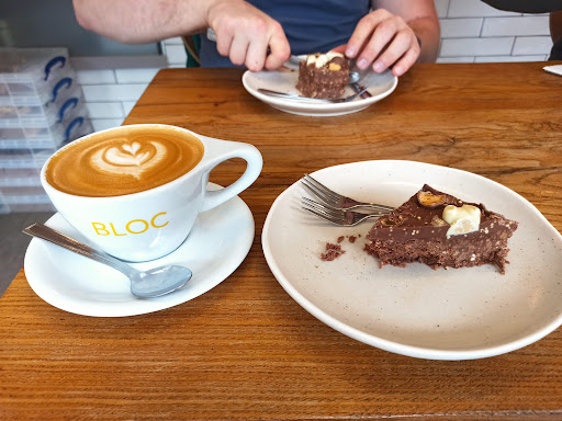 Bloc Café is flooded with light and cheerful in the extreme, could be likened to a prozac over exposure, due to the café being made of large floor to ceiling windows, unfortunately the view is of the main road which is always busy, but non the less it's always a pleasure to be able to look out and daydream with your coffee cup. The menu is uncomplicated yet unique everything is done to an ultra modern perspective and is quite delightful and very satisfying. Ladies, if you are in need of a sugar rush (and you know what I'm talking about) Bloc is the best place for that sort of emergency, the cakes are quirky, tasty, and beautifully presented Bloc cakes are uber. Therefore I highly...