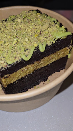 Dubai Viral, Kunafah Brownie + Vanilla Ice Cream (New!): This is a dessert not to be missed. Picture a homemade, thick layer of crunchy kunafah topped with a thick top layer of chocolate and garnished with pistachios and pistachio sauce. The combination is divine. The brownie base is the most indulgent, creamy brownie I've ever tasted. The layers create a morish, heavenly treat that you won't want to share.