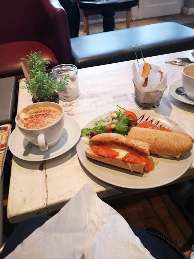 Ā Ā Ā Read more2 drinks and 2 inedible āmeltsā for Ā£18. Very strange service, got bombarded as we walked through the door. The older lady working there got in a strange mood because we hadnāt decided on drinks yet, even though she was politely asked to let us have two more minutes to decide, got in a huff and a puff and stormed downstairs. The food was awful. 2 raw baguettes with a burnt edge on one side, not sure how that is possible but they achieved it! . Sloppy tomatoes, half melted grated mozzarella and some oil dripping out of it which was meant to be āpestoā. Only positive thing was my canned drink! Pricing is absurd for the food...