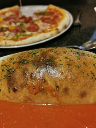 Lovely place, food was nice although my daughter had chicken stripes with garlic butter, unfortunately the chicken was greasy. Myself and my husband had tge chicken kiev calzone which was nice, my son had the meat calzon which he enjoyrd, the other member of our group had spaghetti carbonara, which he enjoyed. However we weren't offered any black pepper or parmesan cheese, disappointing. We felt very rushed, before we even sat down someone came over asking what we'd like to drink, then completely missing out one of our group, he wasn't asked until I mentioned it when they brought the drinks to us. Once the food arrived, we weren't waiting long and it was nice and hot, again the service staff were there reaching across the table whilst we were eating to retrieve empty pop bottles, different service staff. As soon as you put your knife and fork down again the service staff were there asking if you'd finished even whilst others were still eating. Once the table was cleared two different members of staff asked if we'd like dessert, straight after each other. Maybe each member of staff should be designated their own tables/area? Please let us sit back, look at the menu, chat, soak up the atmosphere, enjoy our...