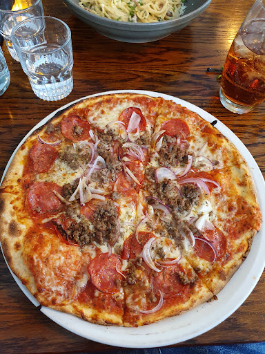 Ā Ā Ā Read moreCrowded and noisy with no music. Too many tables. We were jammed in next to a large family table which meant being pushed to one side by ill mannered children who were constantly in and out of their seats. This however didn't spoil the evening for their equally ill mannered parents who seemed to have no control over them whatsoever. One screaming small child seemed to be a source of entertainment to them (possibly due to the lack of music). My partner (a vegetarian) ordered the Minestrone Soup only to discover when it arrived that it contained meat. The garlic mushrooms, which I ordered, also contained meat (bacon) although it did state this on the menu. My partners main was a vegetarian pizza which for reasons unknown had balsamic vinegar poured over it. I had the pork carbonara which I have to say was very nice. Atmosphere poor. Service good. Food confusing. I wouldn't recommend and will not...