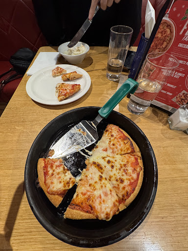 I should have know straight away that the food would be terrible. First impressions and the front of the pizza hut was covered in cigarette ends, and loads of litter. I walked in and waited 5 mins for someone to come over, I had booked and explained that, she looked over at the table we were supposed to be at but some people were already sat having a birthday party. So they over booked our table, so instead of finding another empty one for 8, she didn't know what to do, then placed us on a table for 12, I then took it upon myself to separate the tables (as she didn't really know what to do). No help from staff, except getting me a high chair, even though I'd asked for one on my booking so it should have already been ready for us. They didn't even provide crayons for a 3 and 4 year old. I took it upon myself to go and search for them. Had to order on the app which was ridiculous as my older parents didn't understand. We had to all pay separately which you can't do online. Salad bar looked like a car crash, it looked chewed up and spat back out. After my parents ordered they had to get up and find a staff member to get some glasses as they couldn't be bothered to get any. When our mains came my side didn't I waited a bit to see if it would arrive but it never did, I had to wait for my parents food to come first as there wasn't any staff to ask. (Only 3 waitresses) when I asked she said it had come out but it had been taken to the wrong table. When they finally arrived I'd already finished. The pizza itself was extremely bland and tasteless I think they've changed the recipe. The thin base had a massive thick crust around the outside which my partner didn't like as it should have been thin. My sister's garlic bread was cold and bland. My 3 year old daughter had more chips with her meal, than a sharing adults portion. Oh and it's so bloody over priced it's disgusting. You should be ashamed. As a child pizza hut was where a lot of family memories were made, and I wanted that for my children too. However that's not the case. You need to rethink this place it's no longer kid friendly, it's not older generation friendly either, you had 3 members of staff front of house and 2 of them didn't know the difference between left and right. The atmosphere was awful and the music was so loud you couldn't hear yourself think. The whole no cash is stupid aswell as ordering online. Oh and don't even get me started on giving pizza hut a tip!! For what? I had to order online why would I give a bloody tip? I did everything myself including moving the chuffing furniture around to accommodate our party. You also need to have toilets that actually have soap. You only has 2 toppings for the ice-cream and what you did have was thrown to the side, not even at the station. We won't be back unfortunately, the food bland and the service...