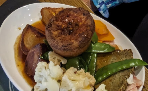 An hour and 10 minutes had passed since our arrival and the restaurant had cleared a lot so I asked if we could move for more comfort, I was told yes. Eventually the meals arrived. In total we had waited an hour and a half, with no apology or explanation. 2 meals came out. 10 minutes later the other 2 arrived. Mine was absolutely inedible. It was supposed to be a roast lamb dinner with new potatoes, roast potatoes and veg. The veg was covered in a ragu/tomato/herb sauce.... not what you want with roast lamb... I sent those back. There was no sign of any new potatoes. The 3 frozen roast potatoes were solid as a rock. The Yorkshire pudding would make any Yorkshire person ashamed... flat as a pancake and hard all the way through. And the lamb was actually pork.