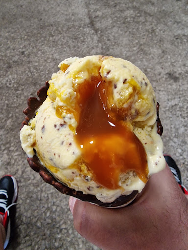 After brunch, I ordered ice-cream from The Udder Room. Downstairs in the restaurant the ice-cream counter was very busy and I was asked to visit the outdoor store instead. There is a nice selection of ice-cream available (see my photos). I ordered the double scoop of Biscoff & Raspberry Ripple in a cone which costs £4. The ice-cream wasn’t particularly special but topped off the lovely brunch.