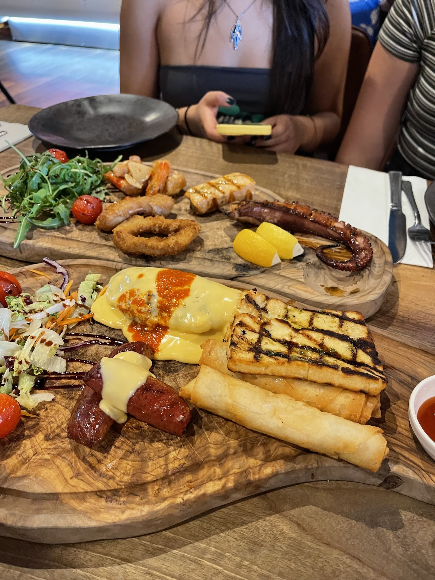 Starter: We had sharing platter for starter. With Prosecco. Starter comprised of grilled chicken, Turkish sausage, Haloumi with pesto, Filo cheese sticks with balsamic glaze seasoned salad.Perfect taster platter and well presented.