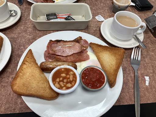 just left the copper kettle and to be fair ..i reacon they need to seriously consider making the large breakfast ....LARGE the breakfast came out pretty quickly but i actually thought they had made a mistake and given us 2 small breakies ยฃ6.90 EACH for 1 thin slice of black pudding 1 small hash brown 23 beans 1 plumb tomatoe 1 small egg 2 tiny rashers bacon and probably the thinest sausage ive ever seen ... it was however quite tasty and grease free ..but would go elsewhere in future ....oh well off to...