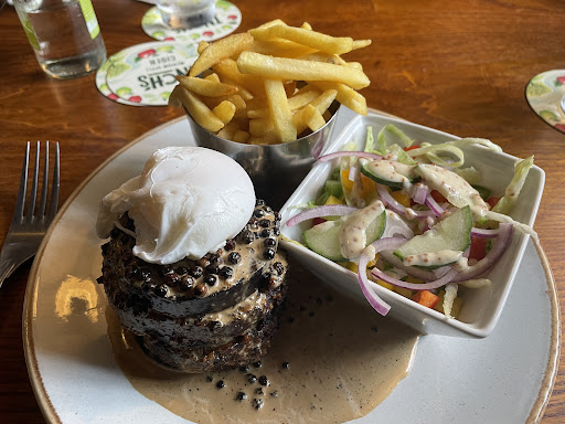 Read moreFirstly I was driving so wanted a fresh orange juice no this pub has no orange juice, anyway settled for an apple juice and ordered two meals. The lady came across with the cutlery and just about threw it onto the table in our direction. The two meals came they were not served to us more like thrown onto the table. The hunters chicken was in a ramekin and the sauce looked like it had just been chucked in and the side salad looked like it had been sat in a hot room for a day it was that limp and uninviting. I ordered the sirloin steak medium cooked but on cutting into it I've seen a better colour and consistency on a pork chop. After this I really didn't want to eat the rest of the meal so just payed and left. Maybe if the host was as interested in customer service and less of believing us a hinderence to her time the meal might have been a bit more bearable, personally I would...