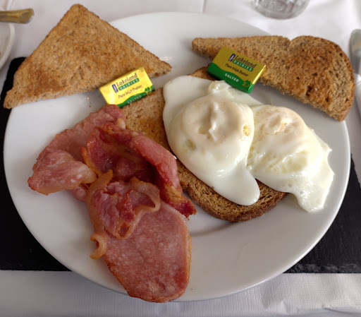 Read moreWe arrived here on the 17th of April after a pretty long walk so we had an appetite. I orderd the very large breakfast and my wife ordered the Tea cake. The Tea cake was the best one she has ever eaten with delicous Jam, and Butter, along with what seemed like an endless pot of tea with fresh tea leaves. My breakfast was extremely good. I have never seen such beautifully prepared poached eggs in my life that just oozed the most delicous yoke. The sausages were beautiful as was the beans, and crispy toast. Hash browns great. The Bacon was nice but seemed to be unsmoked. The only downside I could find was that the black pudding was not great, not because of the coooking of it, but I have eaten that brand before and it does not have great flavour, (Also being a scotsman we have a refined palate for black pudding lol). The latte was so good, that I had two. The staff were extremely friendly, and helpful. This cafe / restaurant sits on the main road across from the promenade, and is tastefully decortated. I would recommend it as the best breakfast I have had in 11 years of...