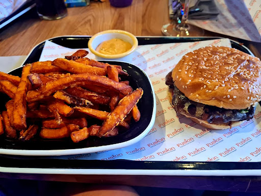 Read moreI visited Fusion tonight for a meal with my family, our first post lockdown get together. I would highly recommend this Restaurant. Food: I had a 3 course meal all cooked to perfection and flavourful. I particularly enjoyed the ribs starter and the crispy chicken burger. Chicken was succulent and tasty. All my fussy requirements (yes there were a few) was met with a smile and accommodated without complaint. Drinks: Huge menu choice for drinks. The merlot was really nice and there's no skimping on anything in this place, large glasses well filled. I finished with a mango frozen cocktail which was by far the best I've had in the area. I also tried my sister in laws "fusion" non alcoholic drink and this was also delicious. Atmosphere: The atmosphere is spot on, vibrant decor, the eye is never bored nor overwhelmed. Appropriate music at the right volume to create a nice background noise that doesn't distract from the conversation. The tables are well spaced so you have the privacy to enjoy your own conversation which hearing others. Service: The service was quick, efficient, polite and helpful throughout. Our waitress was friendly and did a great job. The staff don't seem to sit still! Consistently cleaning sanitising and serving. I dont remember having to wait for service at any point despite the place being fully booked and only its second night running. Drinks were replenished as soon as required. Other Info: We visited with my two young nieces and found the atmosphere to suit families. Accessible changing facilities, children's menu and colouring books to keep them entertained. Equally I would recommend this place as the perfect place to start on a girls night out or a romantic night Child-friendly · Creative cuisine · Large menu · Cosy atmosphere · Stylish interior · Great...