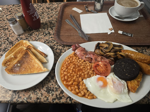 Read moreMe and a friend eat here probably once a month for breakfast. Always get the full one so can't comment on the other meals available. So the breakfast. First of all it comes with a latte if you like which is nice. You can sub any of the items for something else. Bacon instead of tomatoes, yes please. For the money it's not bad. The sausages are those cheap catering breakfast sausages and the bacon and can be quite salty at times. The eggs are usually runny though. The hash browns are crispy and the black pudding is there at all which is usually an extra at a lot of places. Comes with beans and two slices of toast and mushrooms. Fills you up. Nice cafe and the staff are decent. We are never waiting long for a breakfast to arrive. Plenty of seating. Going there again in an hour so was inspired to write the...